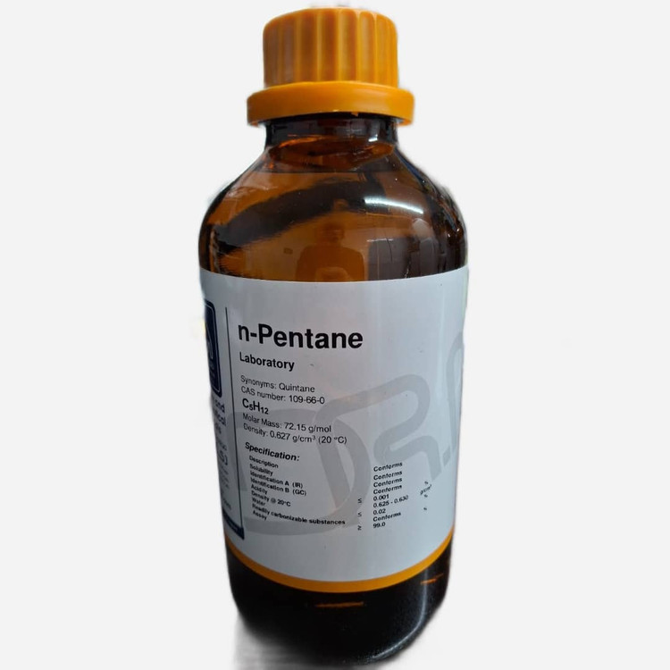 Name: n-Pentane Grade: Laboratory Application: Extraction, Synthesis Synonyms: Quintane CAS Number: 109-66-0 EC Number: 203-692-4 Molar Mass: 72.15 g/mol Chemical Formula: C5H12